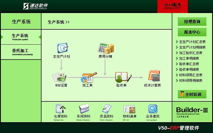 《速達V50-ERP-工業版》集ERP系統、財務管理、項目管理、客戶關系管理、工作日志、工作互動平臺服務于一體,實現企業管理完整體系,產品通過強化業務流程控制,有效地幫助企業實現業務管理、生產管理、項目管理、財務管理的制度化。產品引入工作互動平臺服務,有效的整合企業資源,科學管理,全面提升企業工作效率。
